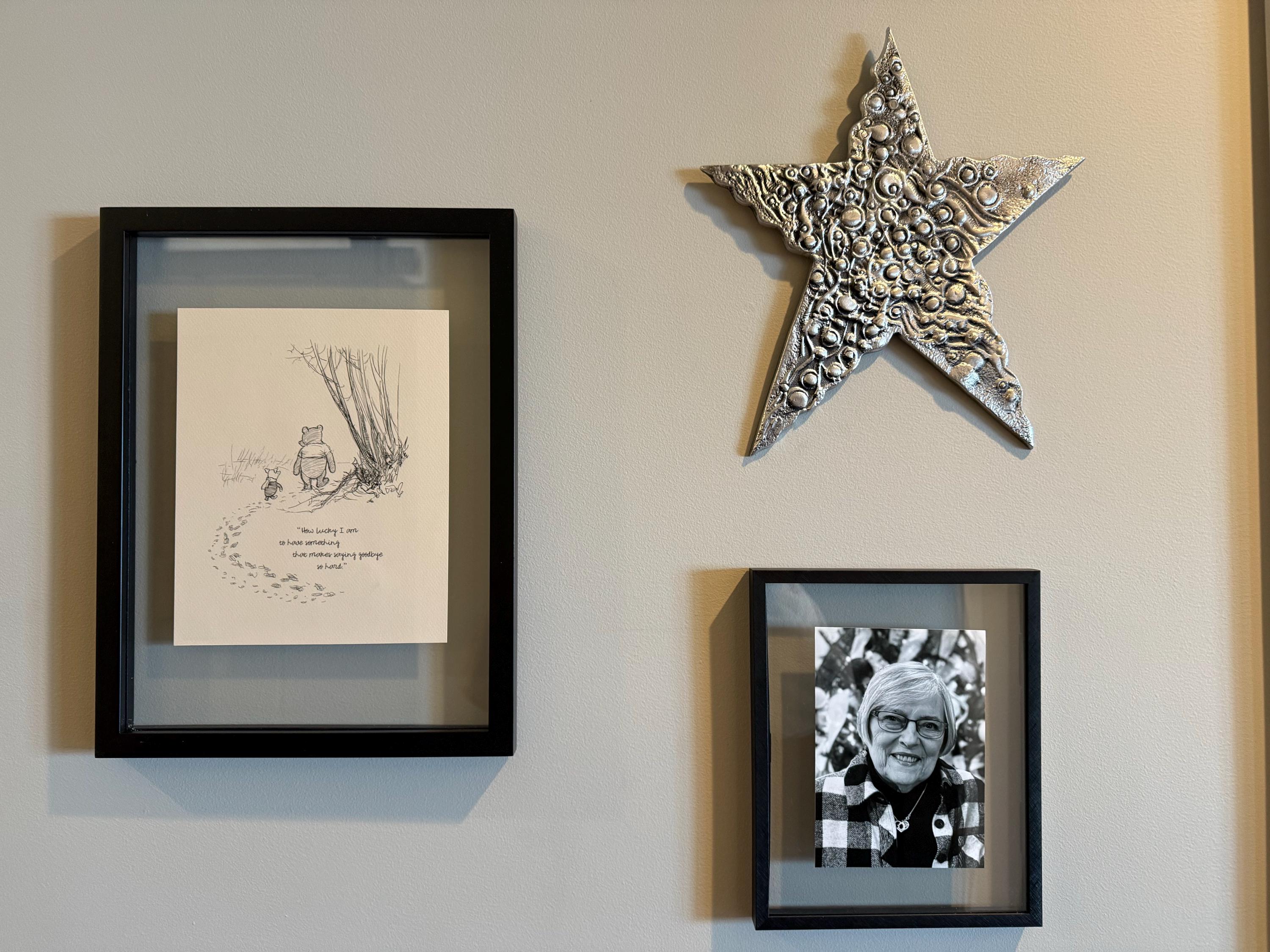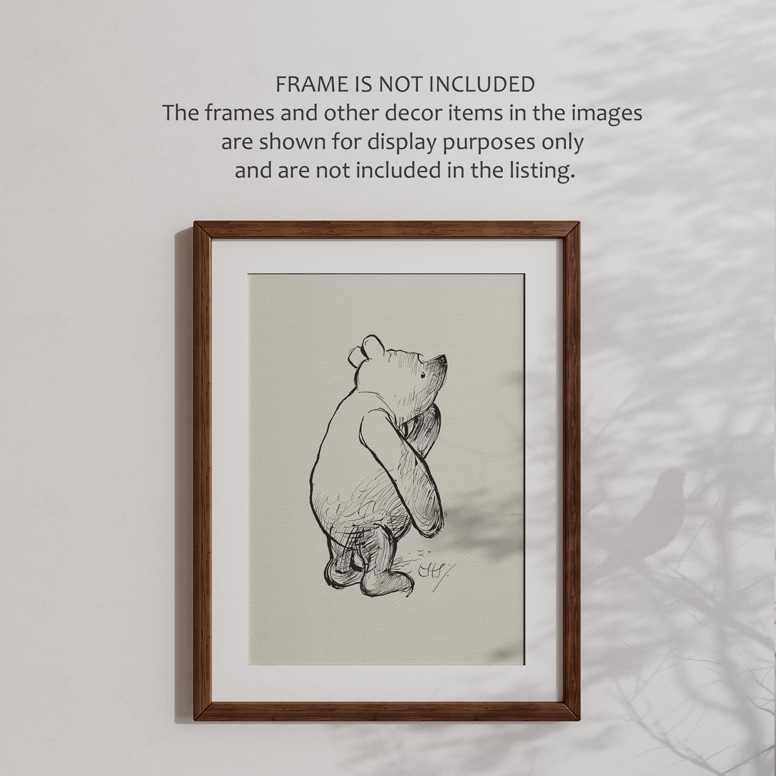 Step back in time to the beloved world of Winnie the Pooh with this meticulously crafted vintage-style black-and-white graphic featuring two inseparable friends walking arm in arm through the wintery Hundred Acre Wood—a timeless scene “in which Pooh and Piglet go hunting and nearly catch a Woozle.” The quote, “How lucky I am to have something that makes saying goodbye so hard,” adds a heartfelt touch, making this print a meaningful and nostalgic piece for fans of the timeless classic.